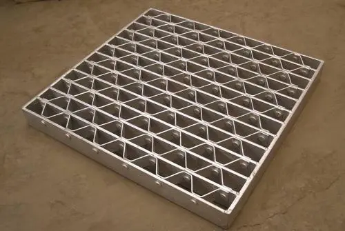 鍍鋅鋼格板是由負載扁鋼和橫桿按一定間距經緯排列,在高壓電阻焊機上焊接而成原板,經切割、切口、開孔、包邊等工序深加工而成客戶要求的成品。然后經過表面熱鍍鋅或冷鍍鋅處理。
